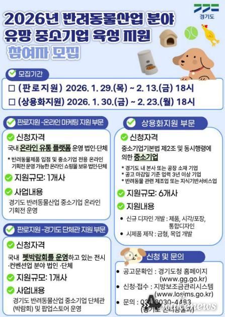 어웨이크뉴스 오경하 기자 | 경기도가 ‘반려동물산업 분야 유망 중소기업 육성 지원사업’ 참여 보조사업자를 모집한다.