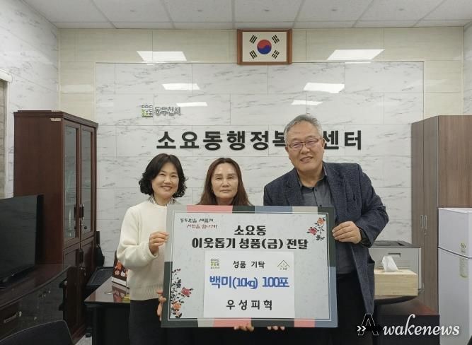 우성피혁 정소현 대표는 소요동 주민자치위원회 사무국장을 역임하며 지역사회 활동에 꾸준히 참여해 왔으며, “명절을 맞아 어려운 주민들에게 조금이나마 도움이 되길 바라는 마음으로 기부를 결정했다”라며 “앞으로도 지역사회 발전에 적극 동참해 더불어 살아가는 소요동을 만드는 데 힘을 보태고 싶다”라고 전했다.
