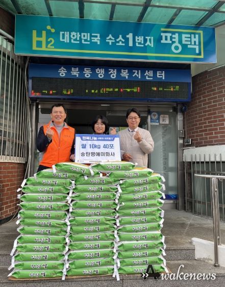 어웨이크뉴스 오경하 기자 | (합자)송탄평애미화사는 4일 설 명절을 맞아 지역 내 취약계층을 지원하기 위해 쌀 10㎏ 40포를 평택시 송북동 행정복지센터와 지역사회보장협의체에 기부했다.