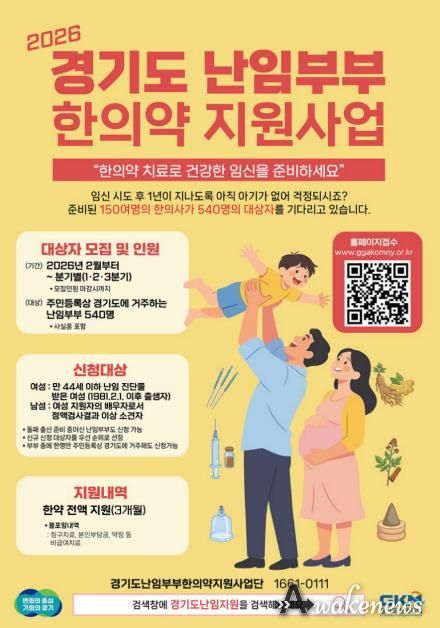 어웨이크뉴스 오경하 기자 | 파주시는 경기도 한의사회와 함께 난임으로 어려움을 겪는 부부들을 돕기 위해 오는 2월 9일부터 ‘난임부부 한의약 지원사업’대상자를 모집한다.