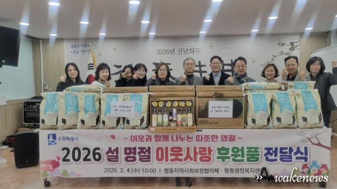 어웨이크뉴스 오경하 기자 | 수원시 권선구 평동은 지난 4일, 설 명절을 앞두고 소외된 이웃을 돕기 위한 ‘2026년 설 맞이 사랑의 물품 전달식’을 가졌다.