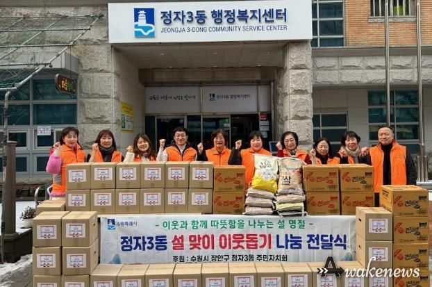 어웨이크뉴스 오경하 기자 | 수원시 장안구 정자3동은 지난 4일 설 명절을 앞두고 이웃과 온정을 나누기 위한 ‘설맞이 이웃돕기 나눔 전달식’을 개최했다.