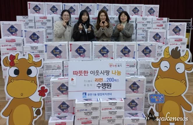 어웨이크뉴스 오경하 기자 | 수병원은 지난 4일, 설 명절을 맞아 어려운 이웃들을 위해 라면 200박스를 우만1동 행정복지센터에 기부하며 이웃사랑을 실천했다.