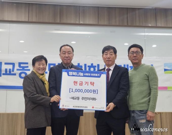 어웨이크뉴스 오경하 기자 | 평택시 세교동 주민자치회는 지난 4일, 세교동 행정복지센터에서 설 명절을 맞이하여 이웃돕기 성금 100만 원을 기부했다.