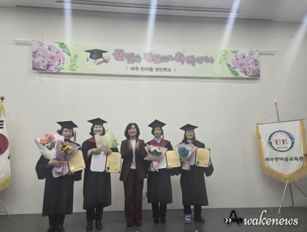 어웨이크뉴스 오경하 기자 | 파주교육지원청은 2월 5일, 금촌1동 행복복지센터 대강당에서 열린 학력인정 문해교육 중학 3단계 과정 졸업식에 참석했다.