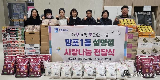 어웨이크뉴스 오경하 기자 | 수원시 영통구 망포1동은 지난 5일, 주민자치회·통장협의회·지역사회보장협의체·바르게살기운동위원회 등 4개 단체장협의회장이 참석한 가운데 관내 어려운 이웃을 지원하기 위한 설 명절 이웃사랑 나눔 전달식을 개최했다.