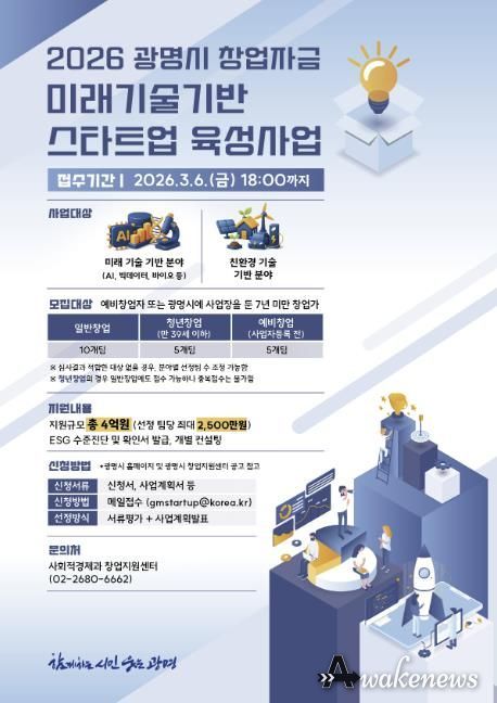 참여를 희망하는 창업자는 오는 3월 6일까지 광명시 누리집 또는 광명시 창업지원센터 누리집 공고를 확인한 뒤 이메일로 제출하면 된다.