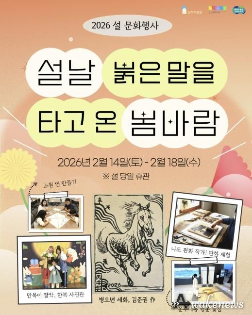 어웨이크뉴스 오경하 기자 | 경기문화재단 실학박물관은 2026년 병오년(丙午年) 설 명절을 맞아 오는 2월 14일부터 18일까지 문화 행사 '설날, 붉은 말을 타고 온 봄바람'을 운영한다. 이번 행사는 박물관 로비에 마련된 체험 부스에서 진행되며, 실학박물관을 찾는 가족 단위 관람객을 위해 전통 세시풍속을 현대적인 놀이와 체험으로 재해석하여 관람객에게 특별한 추억을 선사할 예정이다.