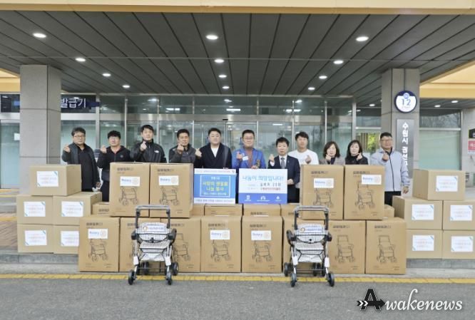 이날 전달식에서 수원남부 로타리클럽은 거동이 불편한 어르신들을 위한 실버카 20대와, 경제적 어려움을 겪는 청소년 10명에게 지원할 1년 치 위생용품을 기탁하며 따뜻한 마음을 전했다.