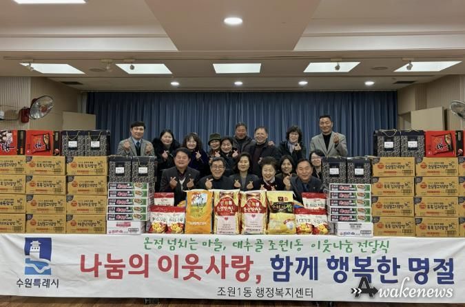 어웨이크뉴스 오경하 기자 | 수원시 장안구 조원1동은 지난 6일, 동 행정복지센터에서 지역사회의 따뜻한 마음을 모아 어려운 이웃을 돕는 설맞이 이웃나눔 전달식을 진행했다.