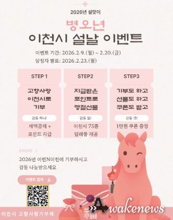 어웨이크뉴스 오경하 기자 | 이천시는 설 명절을 맞아 고향을 응원하는 따뜻한 마음이 기부로 이어질 수 있도록, 고향사랑기부제와 연계한 ‘설 명절 감동 나눔 이벤트’를 추진한다고 밝혔다.