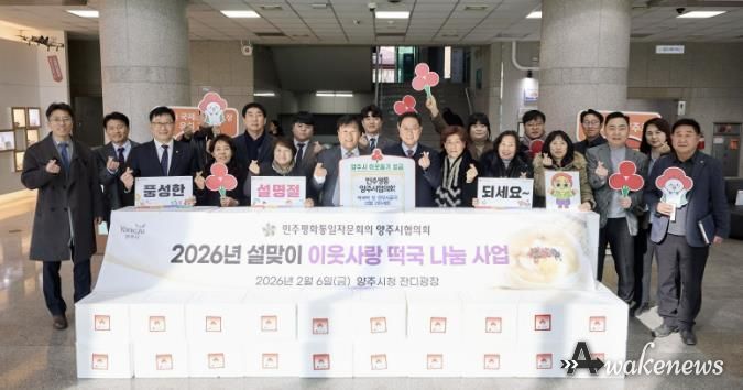 어웨이크뉴스 오경하 기자 | 민주평화통일자문회의 양주시협의회가 지난 6일 지역 내 취약계층을 위해 떡국떡 및 한우사골국 선물 세트 200개를 기부하며 따뜻한 나눔을 실천했다.