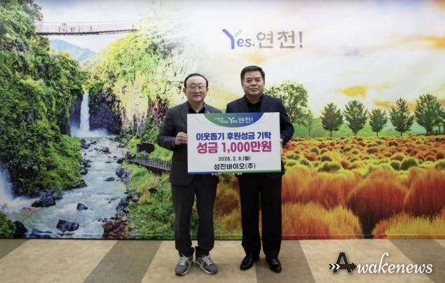 어웨이크뉴스 오경하 기자 | 성진바이오는 지난 9일 연천군청을 방문해 설 명절을 앞두고 관내 소외된 어려운 이웃을 돕기 위해 후원성금 1,000만원을 기탁했다.
