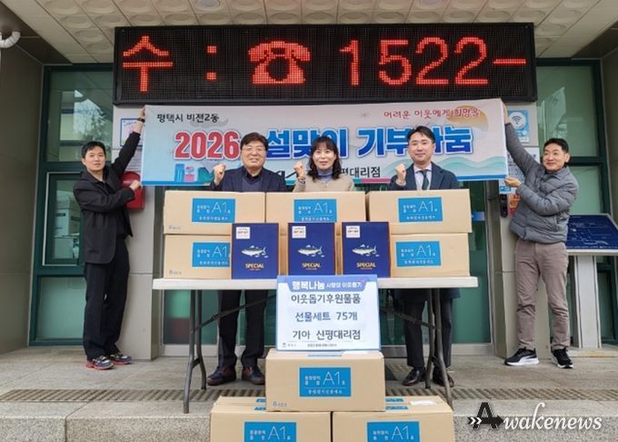 어웨이크뉴스 오경하 기자 | 기아 신평대리점은 10일 설 명절을 맞아 평택시 비전2동 행정복지센터에 지역 내 취약계층을 위한 명절 선물 세트 75박스를 기부했다.