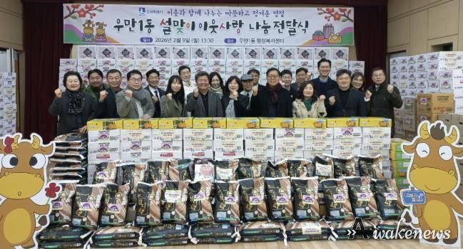 어웨이크뉴스 오경하 기자 | 수원시 팔달구 우만1동은 지난 2월 9일, 설 명절을 앞두고 ‘설맞이 이웃사랑 나눔 전달식’을 개최하며 이웃과 정을 나누는 훈훈한 시간을 마련했다.