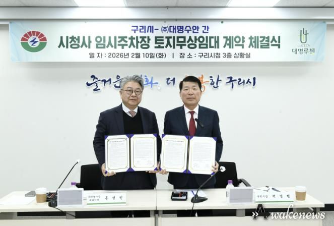 어웨이크뉴스 오경하 기자 | 구리시는 지난 2월 10일 구리시청 3층 상황실에서 ㈜대명수안과 시청사 임시주차장 조성을 위한 토지 무상 임대 계약을 체결했다고 밝혔다.