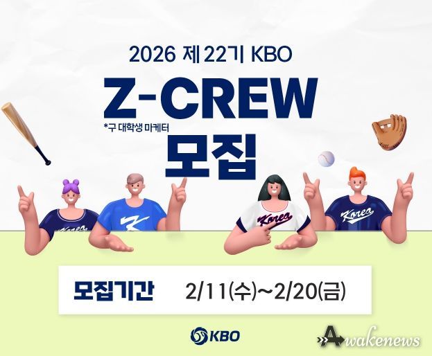 어웨이크뉴스 오경하 기자 | KBO가 2월 11일(수)부터 2026 제 22기 KBO Z-CREW(제트크루)를 모집한다.