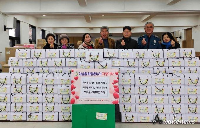 어웨이크뉴스 오경하 기자 | 여주시 가남읍 행정복지센터는 지난 11일, 지역 봉사단체인 ‘이웃을 사랑하는 모임’으로부터 관내 취약계층을 위한 떡국떡 100개와 마스크 3,000매를 전달받았다고 밝혔다.