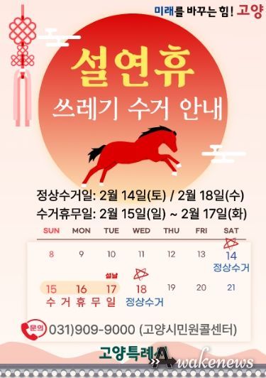 어웨이크뉴스 오경하 기자 | 고양특례시는 설 연휴를 앞두고 시민들이 깨끗하고 쾌적한 환경에서 명절을 보낼 수 있도록 ‘설 연휴 생활쓰레기 관리대책’을 마련하고 비상 대응체계를 운영한다.