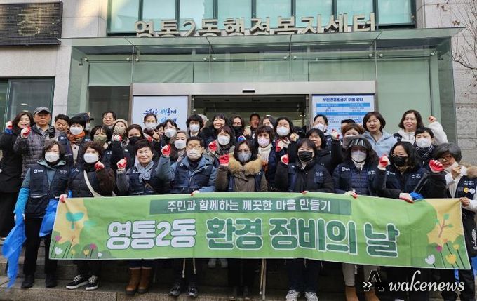 어웨이크뉴스 오경하 기자 | 수원시 영통구 영통2동은 지난 12일 행정복지센터에서 신동 원룸단지와 망포 음식특화거리에 이르기까지, 주민들의 쾌적한 설 연휴를 위해 환경정비 활동을 추진했다.