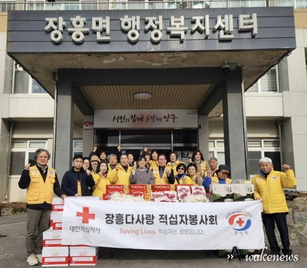 어웨이크뉴스 오경하 기자 | 양주시 장흥다사랑 적십자봉사회가 지난 12일 장흥면 행정복지센터에서 설을 맞아 취약계층을 위한 성품 전달식을 진행했다.