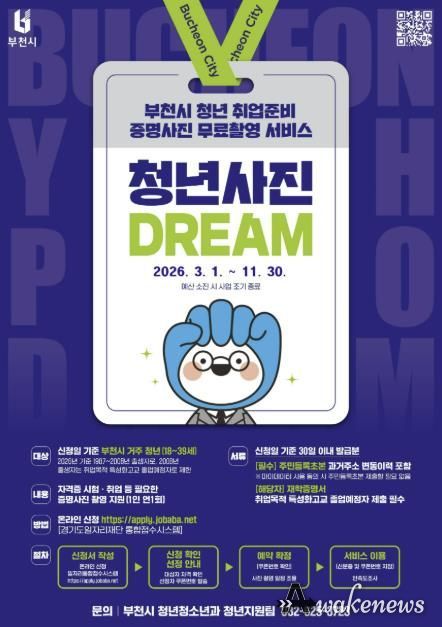 어웨이크뉴스 오경하 기자 | 부천시는 청년의 구직활동과 사회진출을 지원하기 위해 자격증 취득과 취업 준비 과정에서 필요한 증명사진 촬영을 지원하는 ‘부천 청년 사진 드림(Dream) 사업’을 추진한다고 13일 밝혔다.