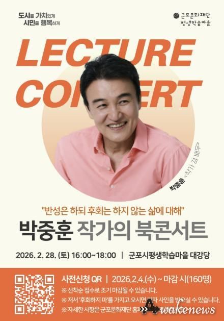 어웨이크뉴스 오경하 기자 | 군포문화재단 군포시평생학습마을은 2월 28일 렉처콘서트의 일환으로 북콘서트를 개최한다. 올해 3회를 맞이하는 렉처콘서트는 시민이 참여하여 즐길 수 있는 평생학습 대표 행사로서 자리매김하고 있다.