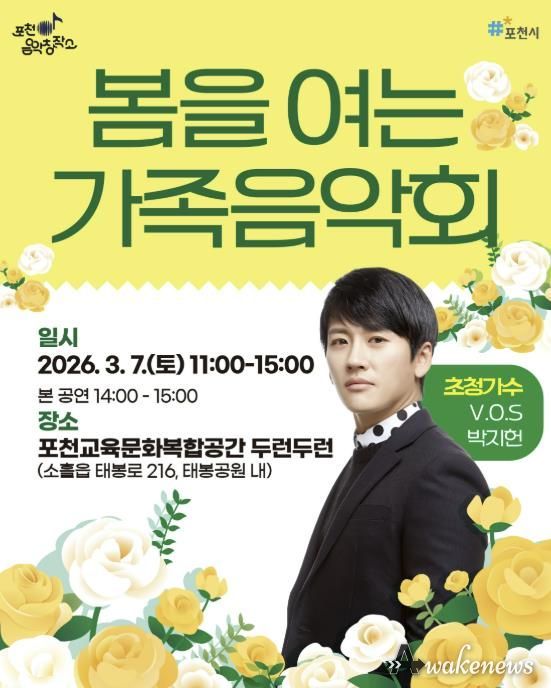 어웨이크뉴스 오경하 기자 | 포천시는 오는 3월 7일 포천시 교육문화복합공간 두런두런에서 ‘포천음악창작소, 봄을 여는 가족음악회’를 개최한다.