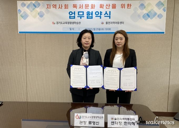 어웨이크뉴스 오경하 기자 | 경기도교육청평생학습관이 25일 지역사회 어린이들의 독서문화 확산과 다양한 독서프로그램 개발을 위해 율전지역아동센터(센터장 한지혜)와 업무협약을 체결했다.