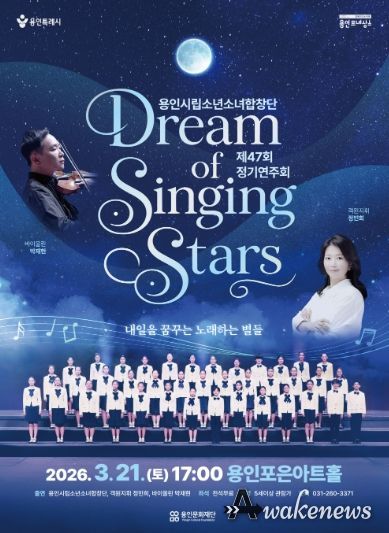 어웨이크뉴스 오경하 기자 | 용인문화재단은 오는 3월 21일 용인포은아트홀에서 용인시립소년소녀합창단 제47회 정기연주회'Dream of Singing Stars'를 개최한다고 밝혔다.