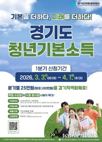 어웨이크뉴스 오경하 기자 | 김포시는 지역 청년의 자립 기반 마련과 지역 내 소비 활성화를 위해 ‘2026년 경기도 청년기본소득’ 1분기 신청을 오는 3월 3일부터 4월 1일까지 접수한다고 밝혔다.