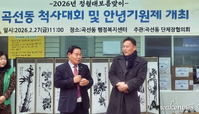 어웨이크뉴스 오경하 기자 | 수원특례시의회는 2월 27일 곡선동 행정복지센터에서 열린 정월대보름 척사대회에 참석해 주민들과 함께 한 해의 건강과 풍요를 기원했다. 이날 행사에는 기획경제위원회 장정희 위원장(더불어민주당, 권선2·곡선), 도시미래위원회 이찬용 위원장(국민의힘, 권선2·곡선)도 함께했다.