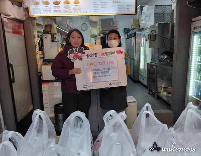 어웨이크뉴스 오경하 기자 | 의정부시 송산1동주민센터는 2월 27일 60계치킨 고산점이 관내 저소득 한부모가정을 위해 치킨 10마리를 후원하며 따뜻한 나눔을 실천했다고 밝혔다.