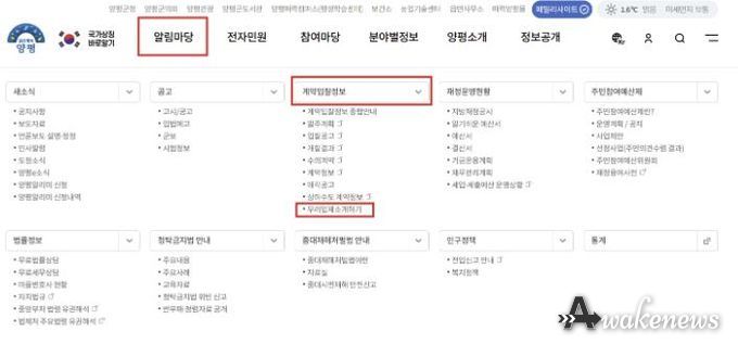 어웨이크뉴스 오경하 기자 | 양평군은 지역경제 활성화와 청년기업 및 신생(창업)기업의 공공시장 참여 확대를 위해 양평군청 누리집에 ‘우리업체 소개하기’ 게시판을 신설했다고 밝혔다.