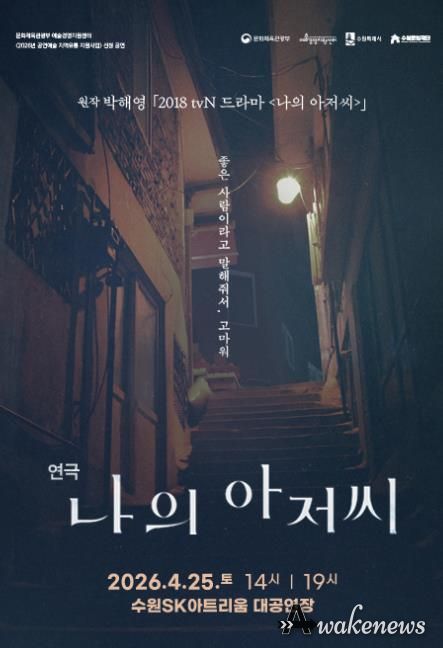 어웨이크뉴스 오경하 기자 | 수원문화재단 수원SK아트리움은 오는 4월 25일, 수많은 시청자의 인생 드라마로 손꼽히는 tvN 드라마 원작의 연극 ‘나의 아저씨’를 대공연장 무대에 올린다고 밝혔다.