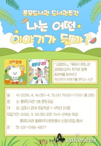 어웨이크뉴스 오경하 기자 | 김포시 풍무도서관은 오는 4월 14일부터 15일까지 총 2회에 걸쳐 어린이 프로그램 ‘나는 어떤 이야기가 될까?’를 운영한다.