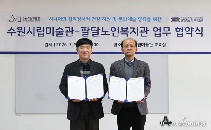 어웨이크뉴스 오경하 기자 | 경기도 수원시립미술관과 수원시 팔달노인복지관은 5일 관내 시니어의 문화예술 향유 활성화를 위한 업무협약을 체결했다.