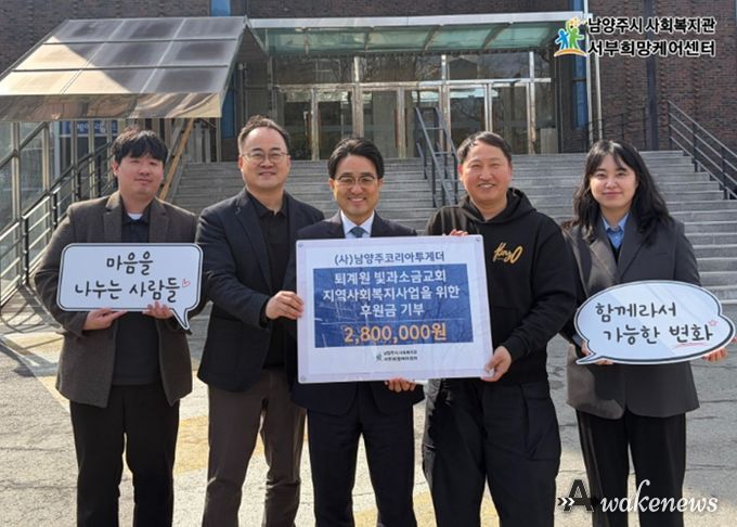 어웨이크뉴스 오경하 기자 | 남양주시는 지난 4일 서부희망케어센터에서 (사)남양주코리아투게더와 퇴계원 빛과소금교회, 처갓집양념치킨 퇴계원점이 퇴계원 아동·청소년 외식지원사업 ‘매월일닭’후원금 전달식을 진행했다고 5일 밝혔다.