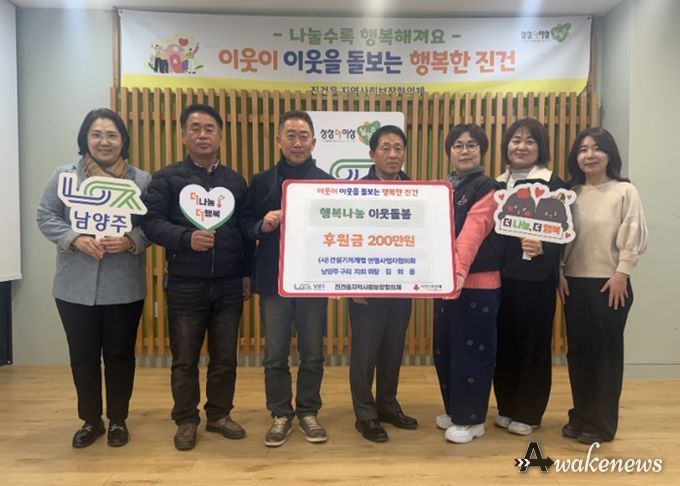 어웨이크뉴스 오경하 기자 | 남양주시는 지난 4일 사단법인 건설기계개별연명사업자협의회 남양주․구리지회가 진건읍 취약계층 지원을 위한 후원금 200만 원을 기탁했다고 5일 밝혔다.