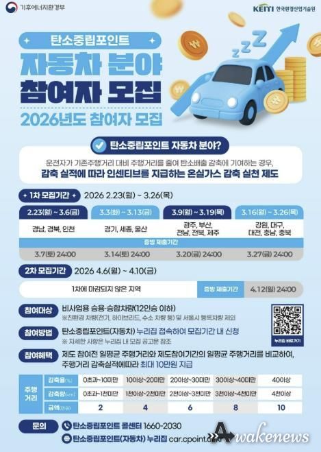참여 신청은 각 분야의 전용 누리집을 통해 개별적으로 진행된다. ▲에너지 분야의 경우 연중 상시 접수가 가능하여 시민들이 언제든지 참여할 수 있는 반면, ▲자동차 분야는 3월 3일부터 13일까지 선착순 모집을 실시하며 감축실적 증빙을 위한 차량 번호판과 주행거리 계기판 사진 등의 자료를 함께 제출해야 한다.