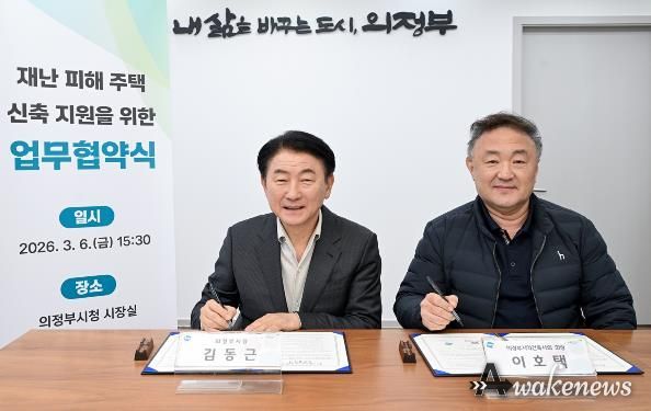 어웨이크뉴스 오경하 기자 | 의정부시는 3월 6일 의정부지역건축사회와 재난으로 주택 피해를 입은 시민의 신속한 주거 안정을 돕기 위한 ‘재난 피해 주택 신축 지원 업무협약’을 체결했다.
