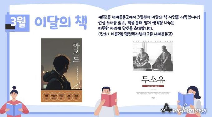 어웨이크뉴스 오경하 기자 | 권선구 세류2동 행정복지센터는 3월부터 주민 독서문화 활성화를 위한 ‘이달의 책, 함께하세류!’ 사업을 운영하고 있다.