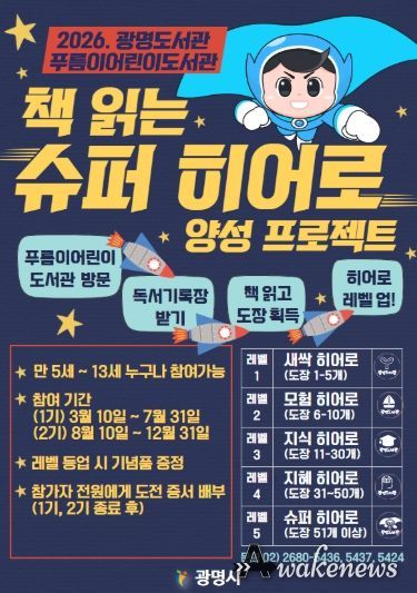 어웨이크뉴스 오경하 기자 | 광명시 광명도서관은 10일부터 푸름이어린이도서관에서 어린이 독서 장려를 위한 ‘책 읽는 슈퍼 히어로(Hero)’ 양성 프로젝트를 운영한다.