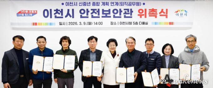 어웨이크뉴스 오경하 기자 | 이천시는 지난 9일 ‘이천시 안전보안관 위촉식’을 열고 신규 안전보안관 7명에게 위촉장을 수여했다.