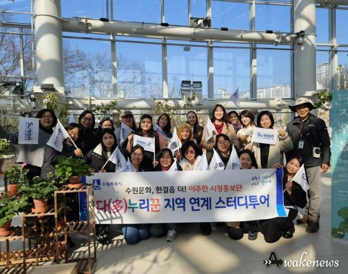 어웨이크뉴스 오경하 기자 | 수원특례시는 10일 일월수목원에서 이주민 시정홍보단 ‘다누리꾼’과 함께 지역 연계 스터디투어를 진행했다.