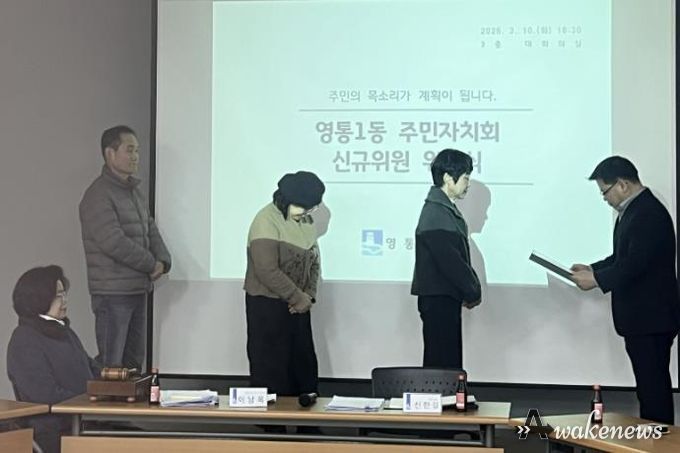 어웨이크뉴스 오경하 기자 | 영통구 영통1동은 지난 10일 영통1동 행정복지센터에서 3월 월례회의를 열고 신규 위원 위촉식을 진행했다.