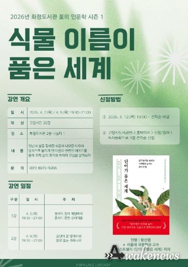 어웨이크뉴스 오경하 기자 | 고양특례시 화정도서관은 오는 4월 2일과 4월 9일 오후 7시 30분, 두 차례에 걸쳐 꽃 인문학 시즌1 강연‘식물 이름이 품은 세계’을 운영한다.
