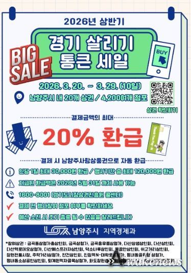 경기도와 경기도시장상권진흥원이 주관하고 남양주시가 함께 추진하는 이번 행사에는 관내 권역별 주요 20개 전통시장과 골목상권 내 소상공인 4,200여 개 점포가 대거 참여해 시민들에게 실질적인 할인 혜택을 제공한다.