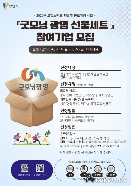 어웨이크뉴스 오경하 기자 | 광명시가 지역 기업의 우수한 제품을 발굴해 지역을 대표하는 로컬브랜드 ‘굿모닝광명’의 얼굴로 육성한다.