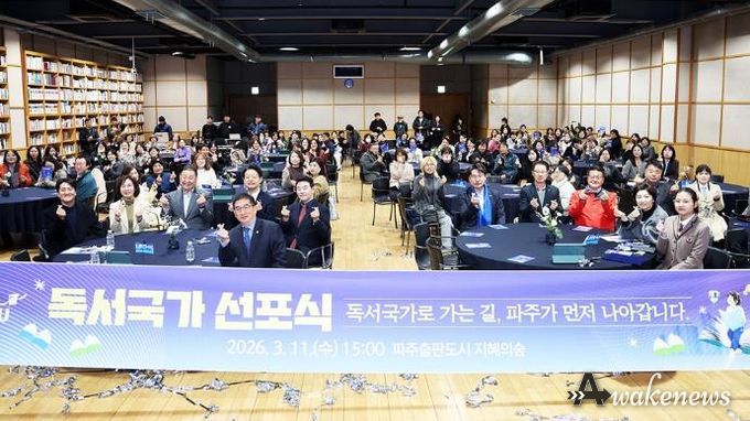어웨이크뉴스 오경하 기자 | 파주시는 지난 11일 파주출판도시 지혜의숲 대회의실에서 시민과 도서관·교육·출판 관계자 등 200여 명이 참석한 가운데 ‘파주시 독서국가 선포식’을 개최했다.